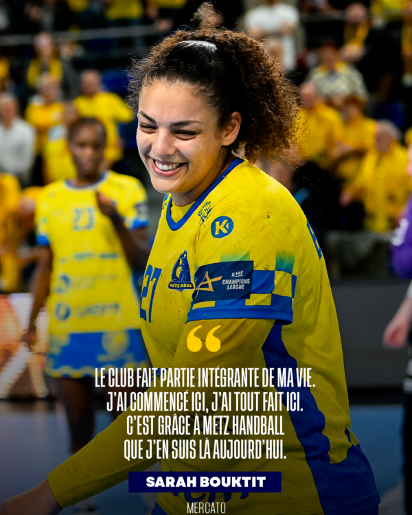 Sarah Bouktit: „Azt hiszem, ezt már valószínűleg kitaláltátok. Úgy döntöttem, hogy a szezon végén elhagyom a klubot, hogy új kalandra induljak külföldön. Nyilvánvalóan nagyon nehéz döntés volt. Mérlegelni kellett az előnyöket és hát- rányokat, alaposan át kellett gondolnom. De azt hiszem, ez olyan karrier- lehetőség, amelyet nehéz visszautasítani, és soha nem lehet tudni, mi történhet később, szóval meghoztam ezt a döntést. Azért akartam elmondani nektek, mert nagyon fontosak vagytok számomra, mert a klub szerves része az életem- nek, és mivel itt kezdtem játszani, mindent itt értem el. A Metz Handball csapa- tának, vezetőinek, szurkolóinak köszönhetem, hogy ma ott vagyok, ahol tartok. Nyilvánvalóan nagyon nehéz lesz elmenni, de remélem, eredményesen zárjuk a szezont. Azt hiszem, már elég jól ismersz ahhoz, hogy tudd, mindent beleadok, ahogy mindig is tettem a klubért, és hogy megpróbálom a legjobb trófeákat visszahozni nektek, mielőtt elmegyek. Nagyon köszönöm a kilenc szezonban nyújtott támogatásotokat, és remélem, hogy az elkövetkező években is támo- gatni fogjátok a Metz Handballt, mert valóban nagyon fontosak vagytok.”