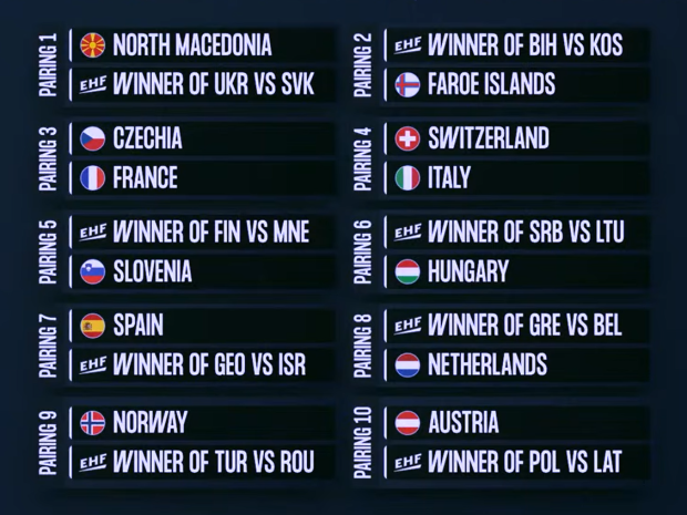 30. Férfi Világbajnokság, európai selejtezők párosítása: